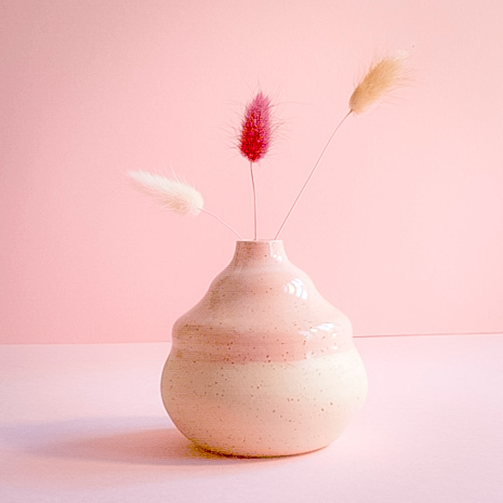 Pink speckled mini vase. Glazed with a transparant glaze and fired at 1140˚C.