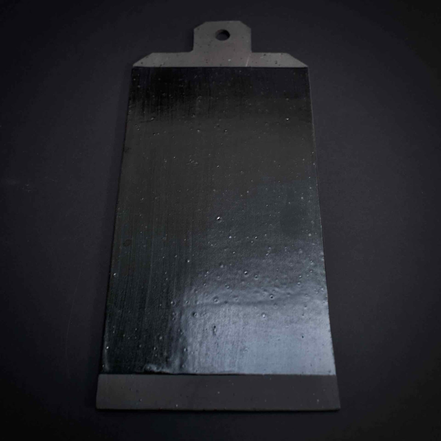 Black speckled serving and cutting plate. Glazed with a black glaze and fired at 1220˚C.