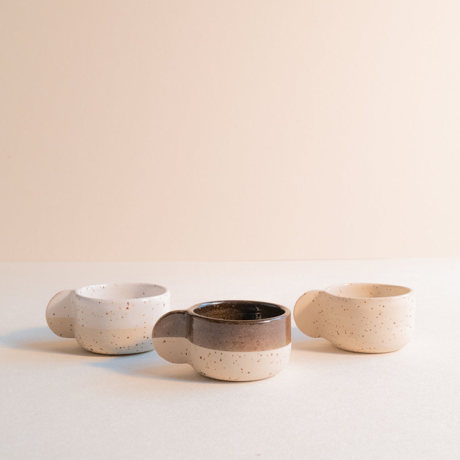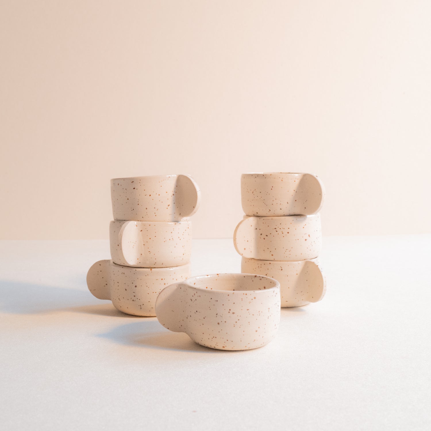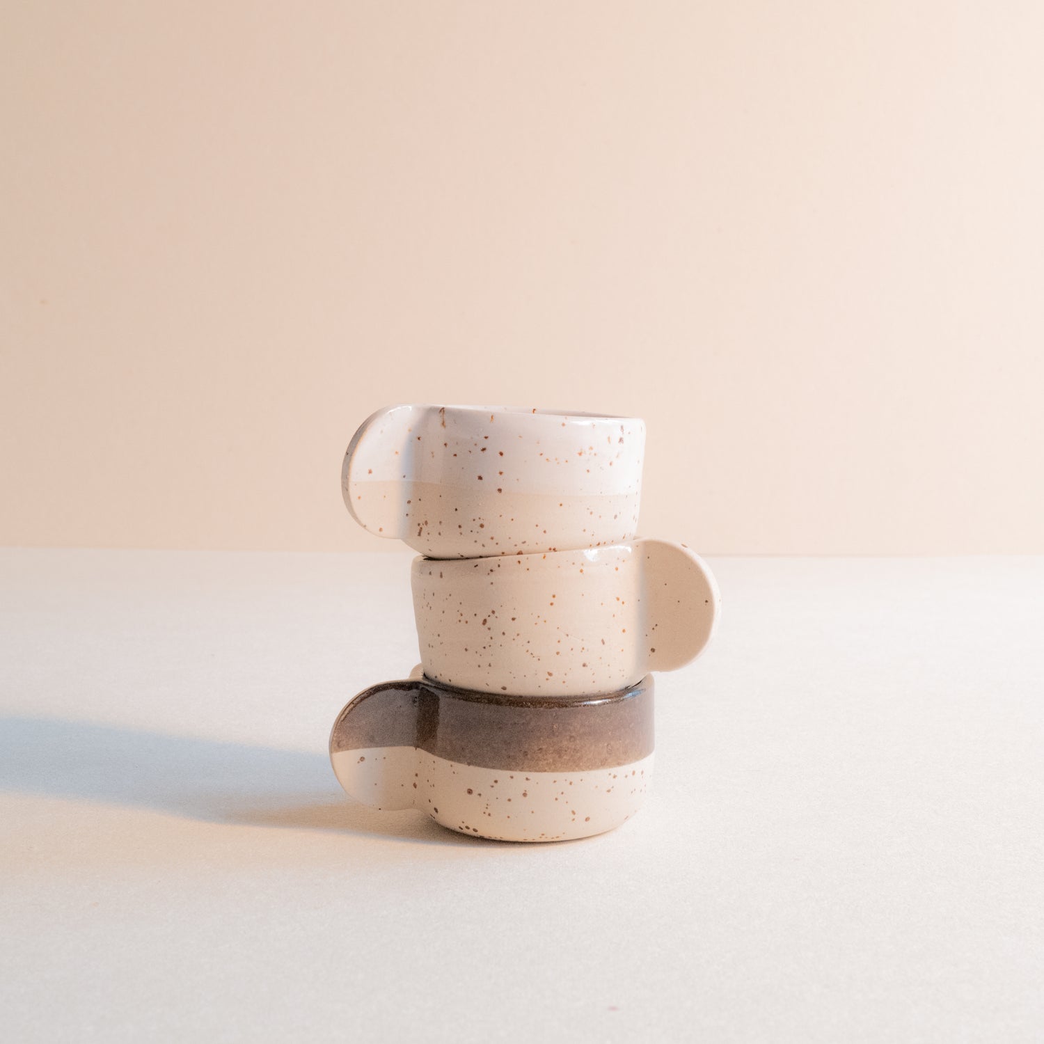 Speckled espresso cup. Glazed with a transparant, white or brown glaze and fired at 1220˚C.