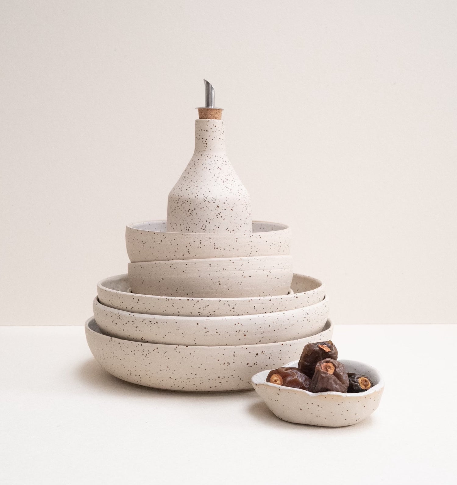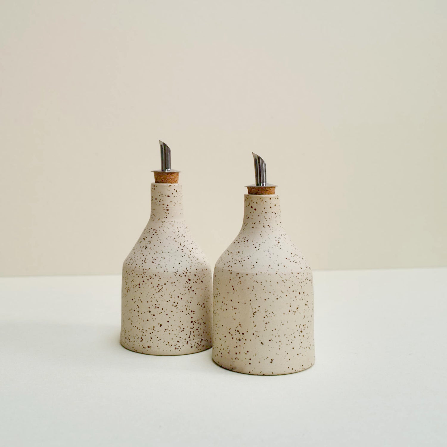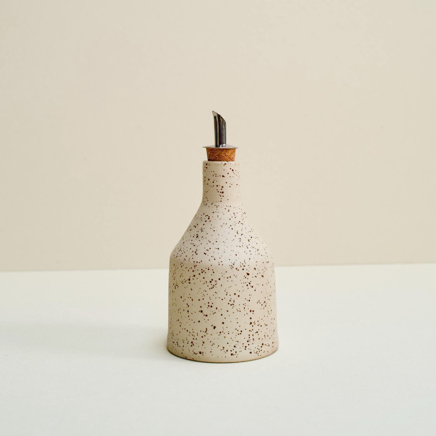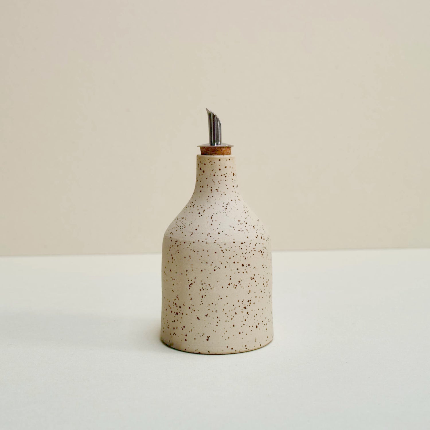 Bottle of speckled clay for your oil or vinegar, glazed at the inside with a transparent glaze and fired at 1220˚C.