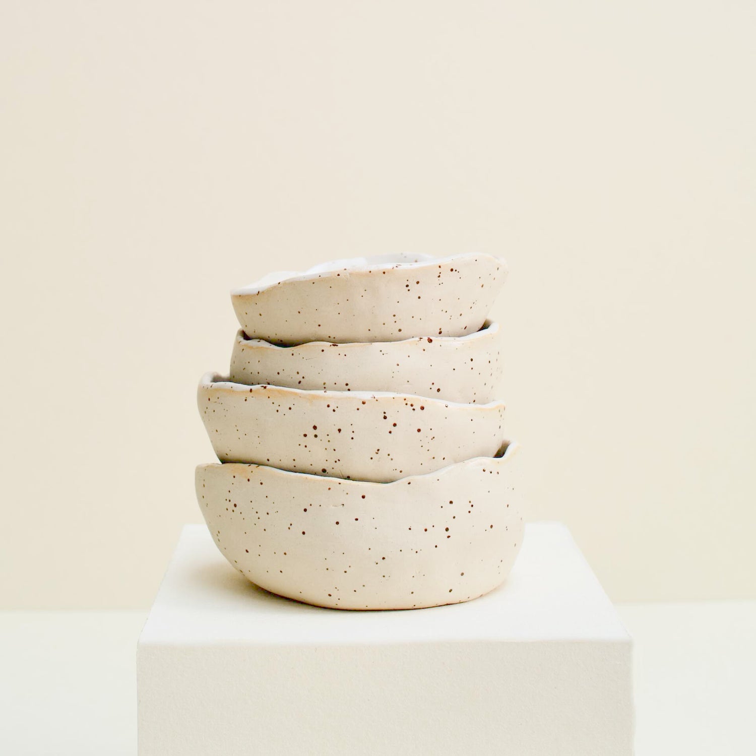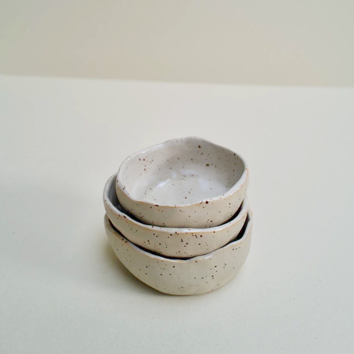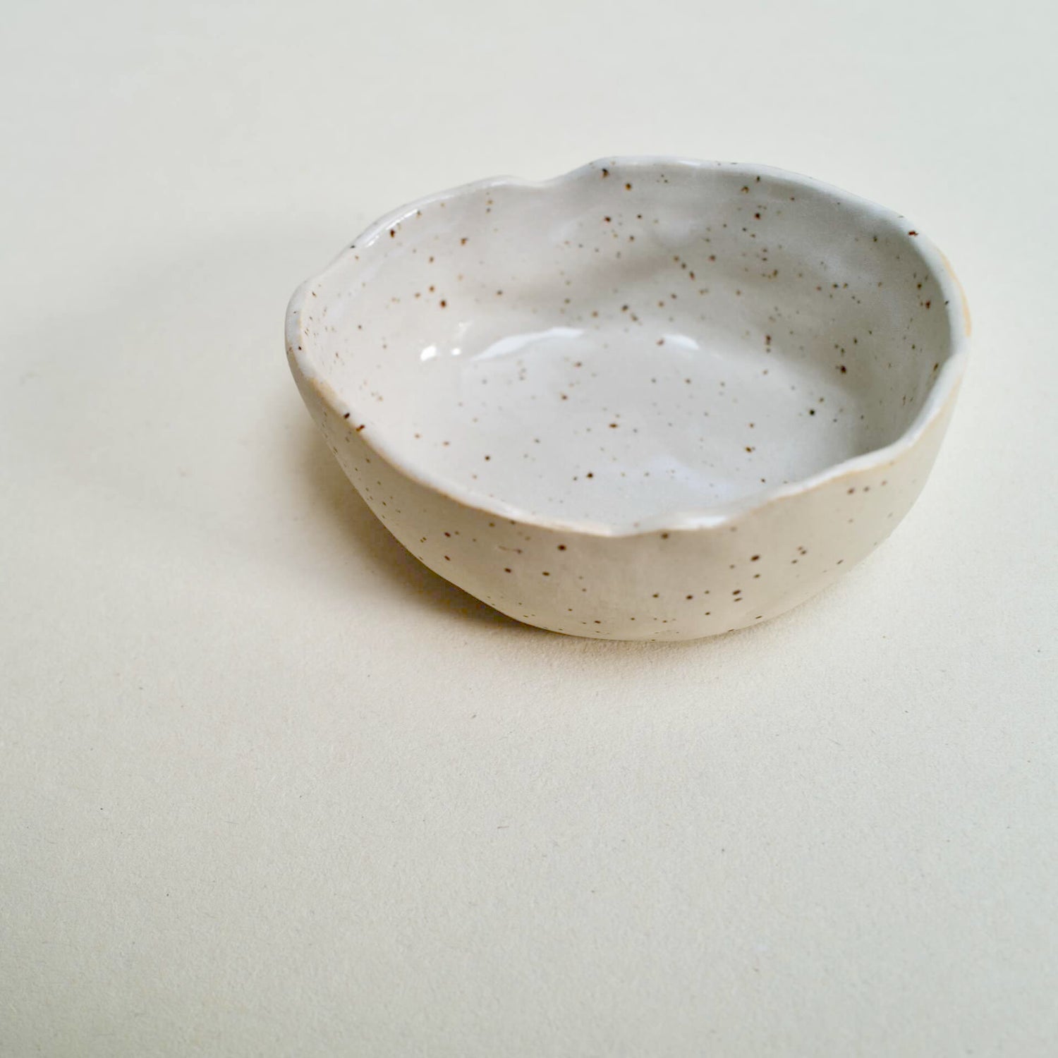 Organic shaped bowl, perfect for serving some olives, tapenade, nuts or chips, glazed with a white / transparent glaze and fired at 1220˚C.