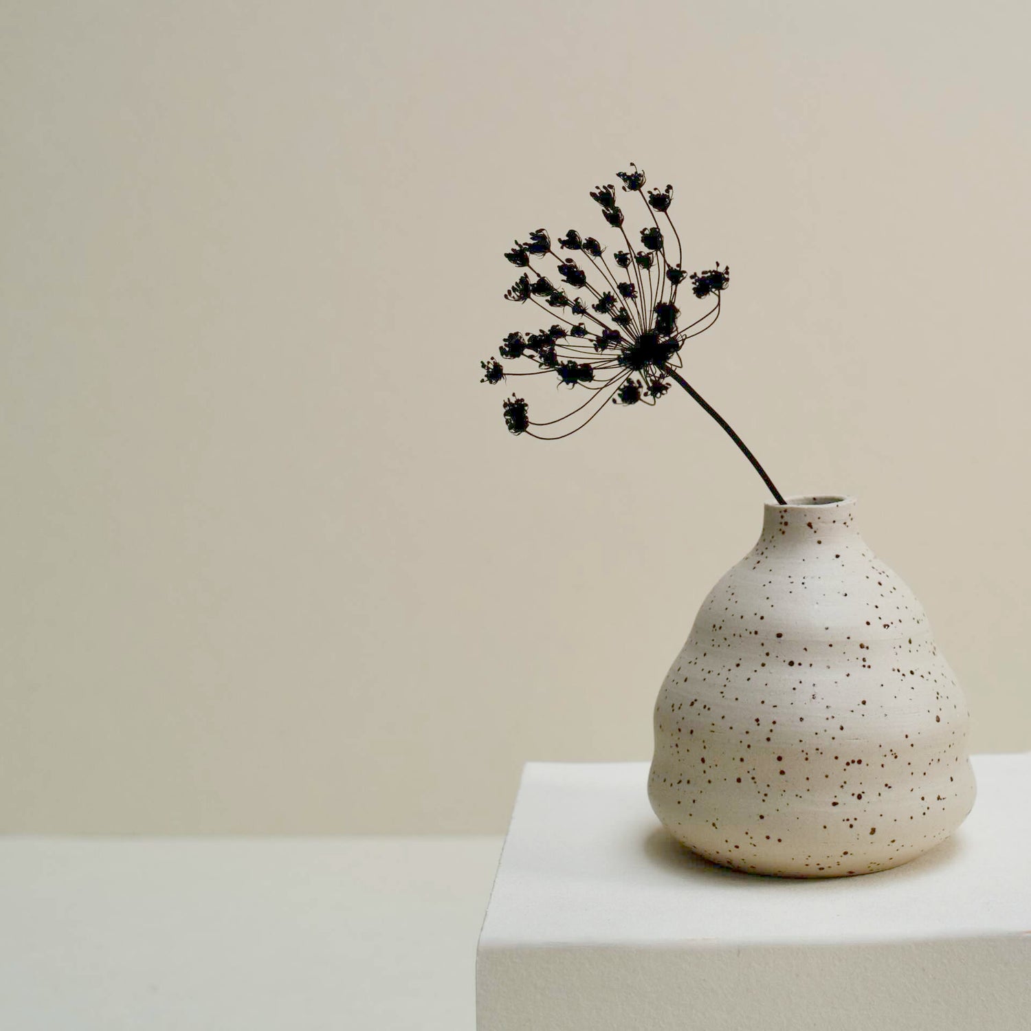 Speckled mini vase. Glazed on the inside with a transparant glaze and fired at 1220˚C.